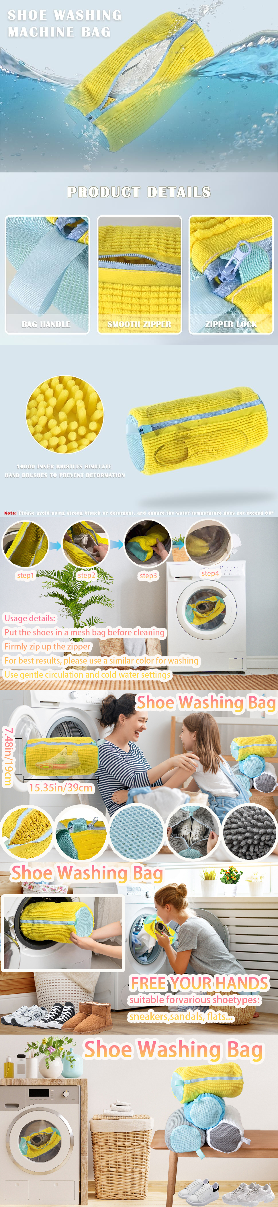 • 360° Deep Clean for Shoes: With thousands of 1-inch chenille microfiber strands, our shoe washing machine bag ensures a full, gentle cleaning experience in your washer. It deeply cleans while maintaining the integrity of your shoes. No more harsh scrubbing—just let the machine do the work! Designed to be the ultimate laundry shoe bag