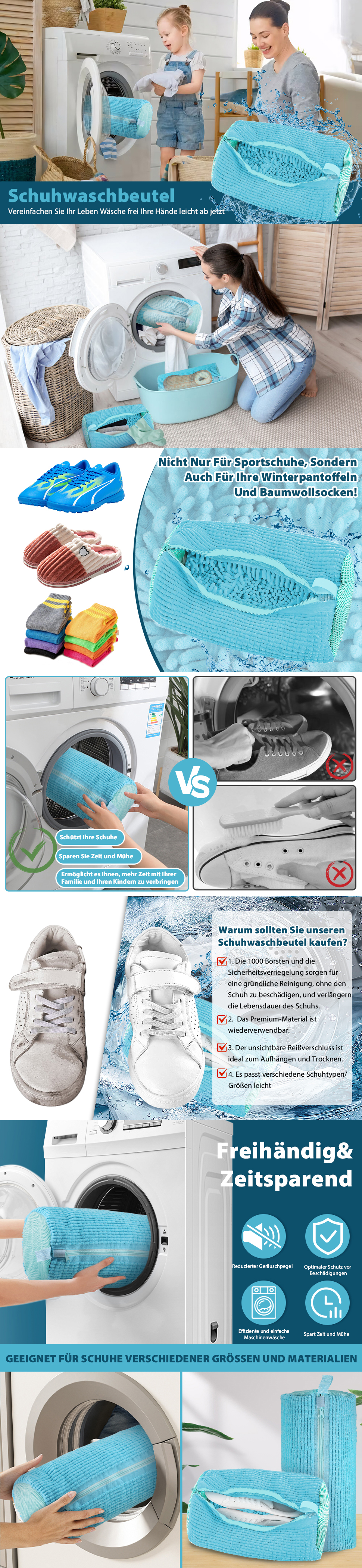 360° Deep Clean for Shoes: With thousands of 1-inch chenille microfiber strands, our shoe washing machine bag ensures a full, gentle cleaning experience in your washer. It deeply cleans while maintaining the integrity of your shoes. No more harsh scrubbing—just let the machine do the work! Designed to be the ultimate laundry shoe bag